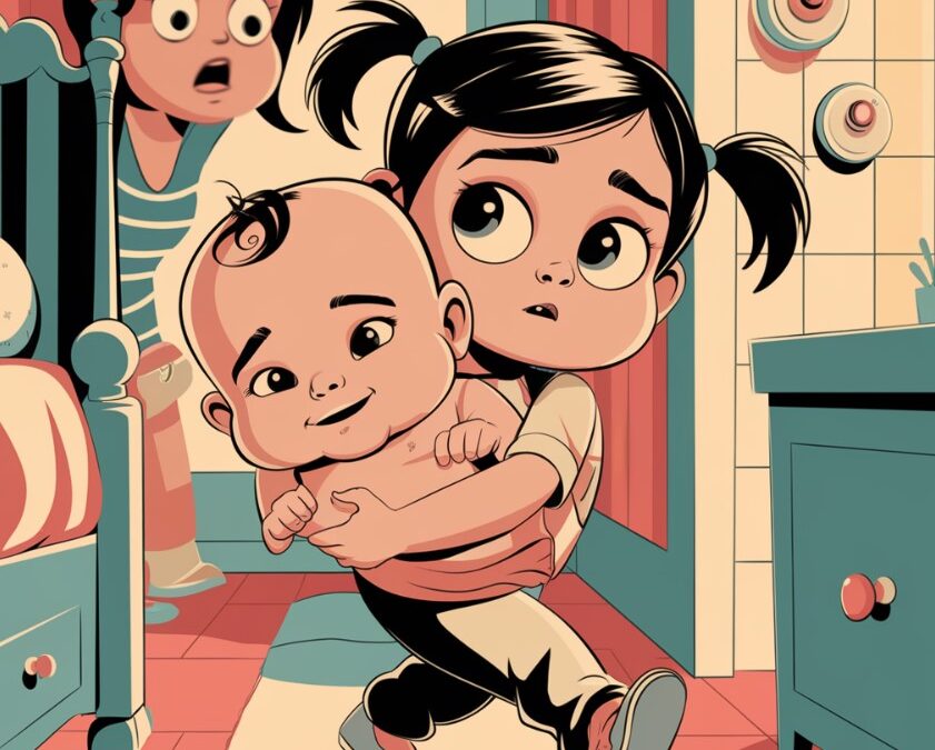 Aztán egy hirtelen ötlettől vezérelve úgy döntök, hogy életemben először (ekkor 3,5 éves vagyok!) felveszem a karjaimba az öcsémet, és elindulok vele a fürdő felé. Összeszedem minden erőmet és bátorságomat, hiszen én miért ne lennék képes erre. Meg igazából anyának szeretnék segíteni, hogy ne kelljen még ezzel is vesződnie, így megspórolhat egy utat, és majd mennyire fog ezért örülni, hogy a nagylánya ilyen ügyes és okos, segítőkész is.